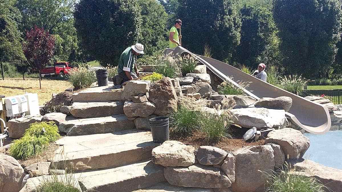 The entire project from start to finish will take anywhere from 6 to 8 weeks weather permitting. Keep in mind if you do add stonework to your project that will bring you closer to the 8 week timeframe as our stonework is done by a professional mason who chips and form all the stone by hand.